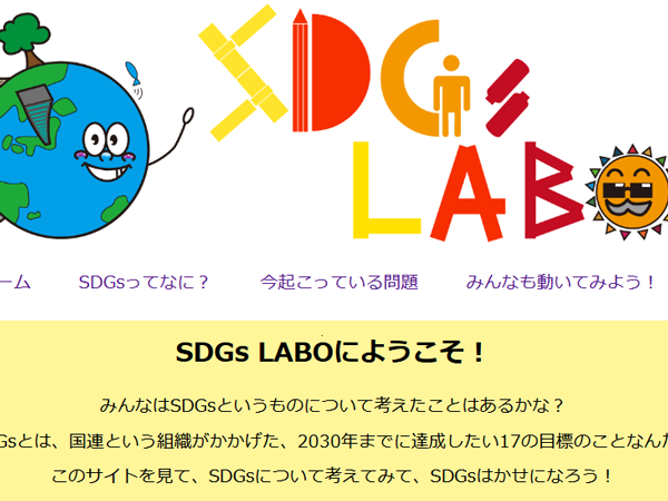 小・中学生を対象にした、「SDGsとはなんなのか」を楽しく学べるWebサイトです。シンプルなイラストにしてわかりやすくする、難しい言葉を使わないなどの工夫をして、見ている人がわかりやすいと感じてもらいやすい作品にしました。