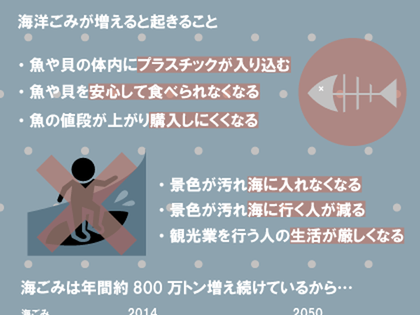 冊子を海、森、街のテーマごとに分けて三冊作成しました。このままの未来がどうなってしまうか、私たちができることを紹介しています。クイズやワークシートのページも設け、より自分事に捉えてもらえるよう工夫しました。